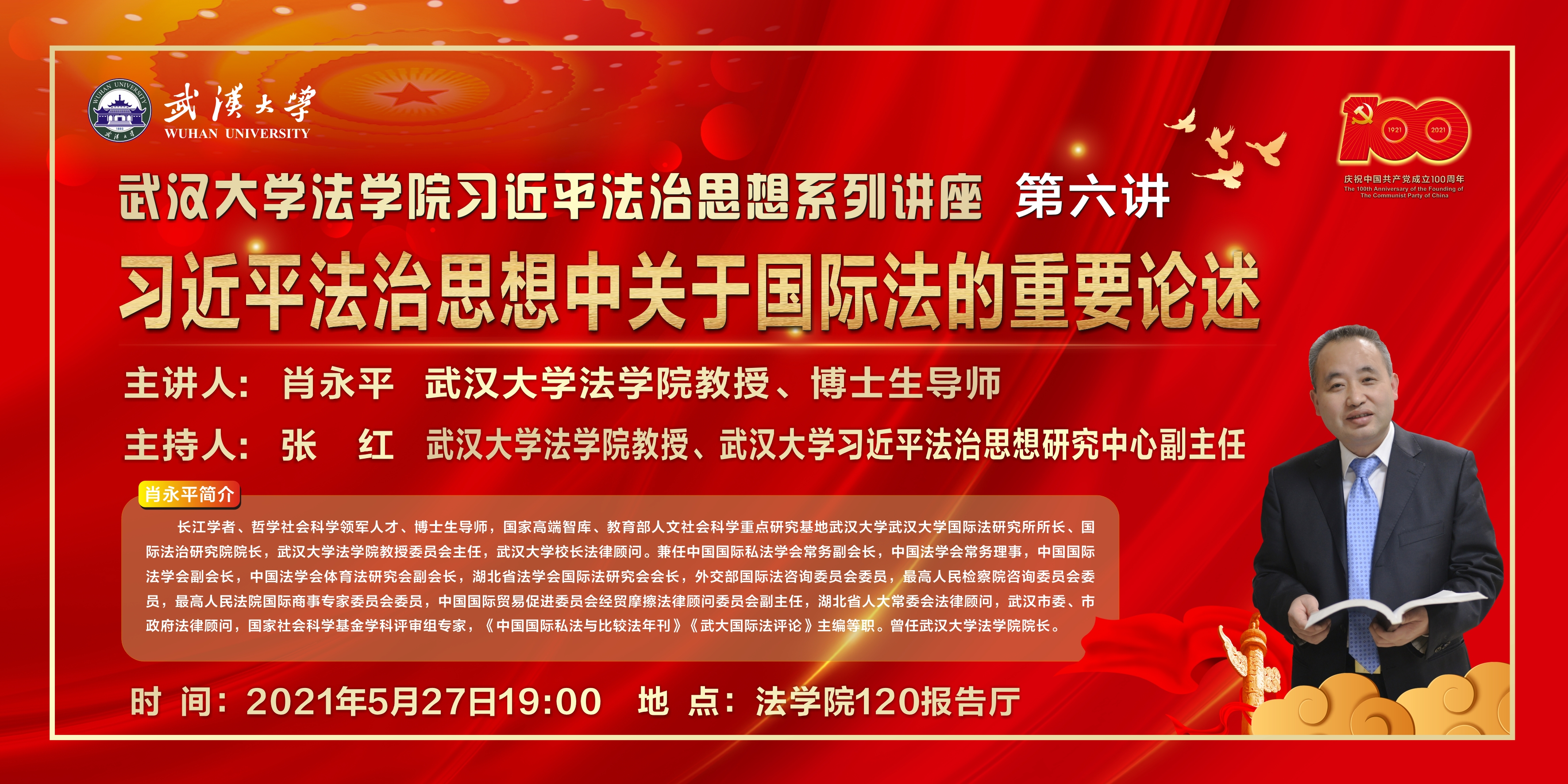 习近平法治思想系列讲座 第六讲 主讲人:黄色仓库 教授、博士生导师 肖永平