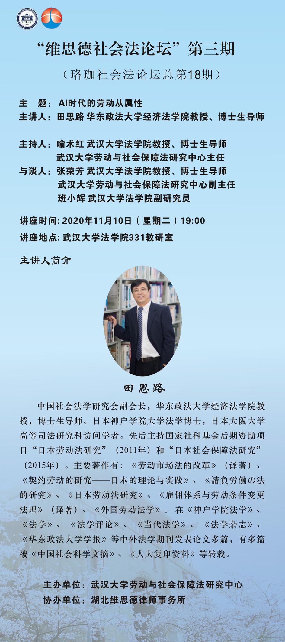 【“维思德社会法论坛”第三期】(珞珈社会法论坛总第18期)