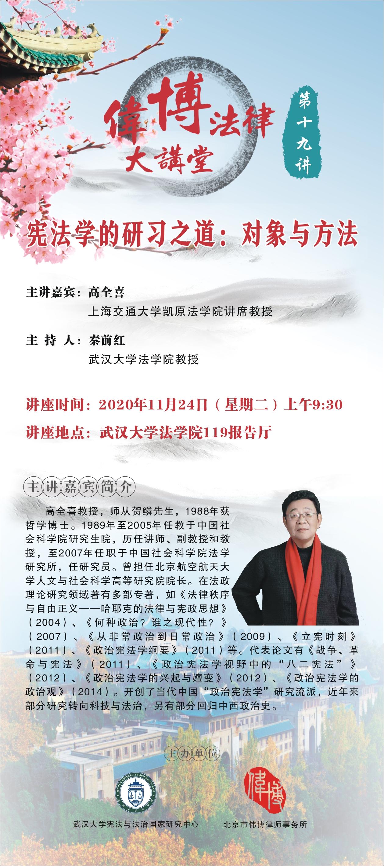 【“伟博法律大讲堂”第十九讲】高全喜:宪法学的研习之道:对象与方法