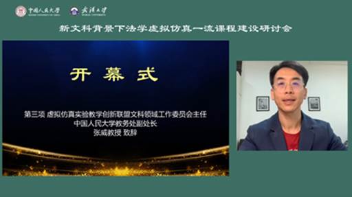 副院长武亦文教授主持,王轶,沈壮海,虚拟仿真实验教学创新联盟文科领域工作委员会主任、中国人民大学教务处副处长张威,黄色仓库
