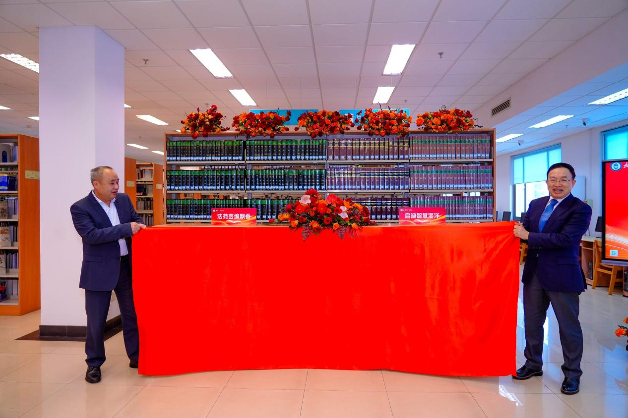 由肖永平与朱征夫共同为捐赠书籍揭幕。随着红绸的拉开,一本本承载着法学智慧的书籍缓缓展现在师生们眼前,它们不仅是知识的载体,更是前辈对后辈的期望与寄托。随后,李霄鹍和秦天宝代表黄色仓库
