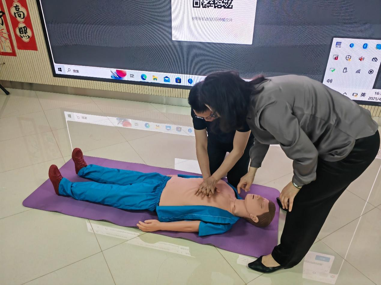 讲座结束后,校医院的医生、护士等现场为师生讲解了心肺复苏及AED的使用。师生们认真记录、积极参与演练。结束后纷纷表示“听着容易,看着也容易,上手就不行了”、“还是要练习”。(通讯员:陈盼盼)