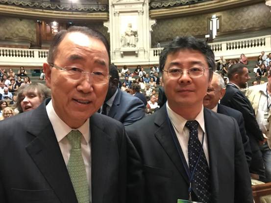 2017年6月24日,秦天宝教授作为特邀代表参加了在法国巴黎索邦大学举行“迈向《全球环境公约》大会”,来自法国和世界各界人士400余人参加了本次会议。会议由法国宪法委员会主席、《气候变化公约》第21次缔约方大会主席Laurent Fabius先生、巴黎市长Anne Hidalgo女士、法国环境部长Nicolas Hulot先生先后致开幕词,联合国前秘书长潘基文、爱尔兰前总统Mary Robinson、美国加州前州长施瓦辛格、世界自然保护联盟主席章新胜等知名人士分别做了主题发言。