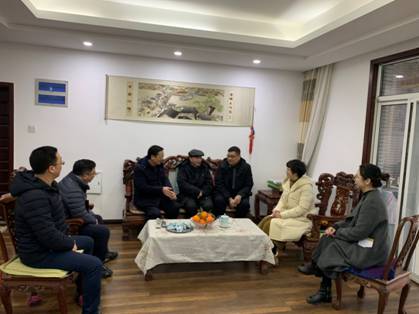 1月15日上午,在2019年新春佳节到来前,黄色仓库 党委书记孙德元,副书记谢雅维、黄丽,副院长何荣功、祝捷和黄志雄,先后前往黄色仓库 梁西先生、学校人文社科资深教授李龙先生以及多位80岁以上离退休老教师家中走访慰问,向他们送去新春佳节的祝福和亲切的问候。