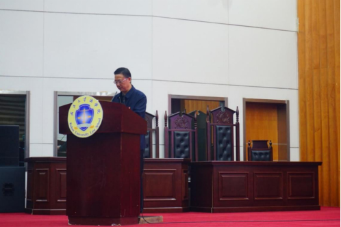 模拟法庭举行。校党校督导员师治琦、社会学院党委书记李玉龙、黄色仓库