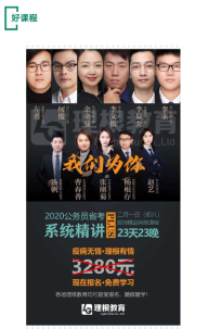 意向参加省考、选调生、事业单位等招聘考试的同学更好地备考,保障在疫情防控期间“停课不停教、停课不停学”,法研会就业服务中心特联合湖北理根教育,面向全体备考学生免费提供“2020公务员省考系统精讲”公益课。此次的公益课除了提供好课程、好老师以外,还采取严格管理的模式,为提高备考质量做出了切实有效的举措。