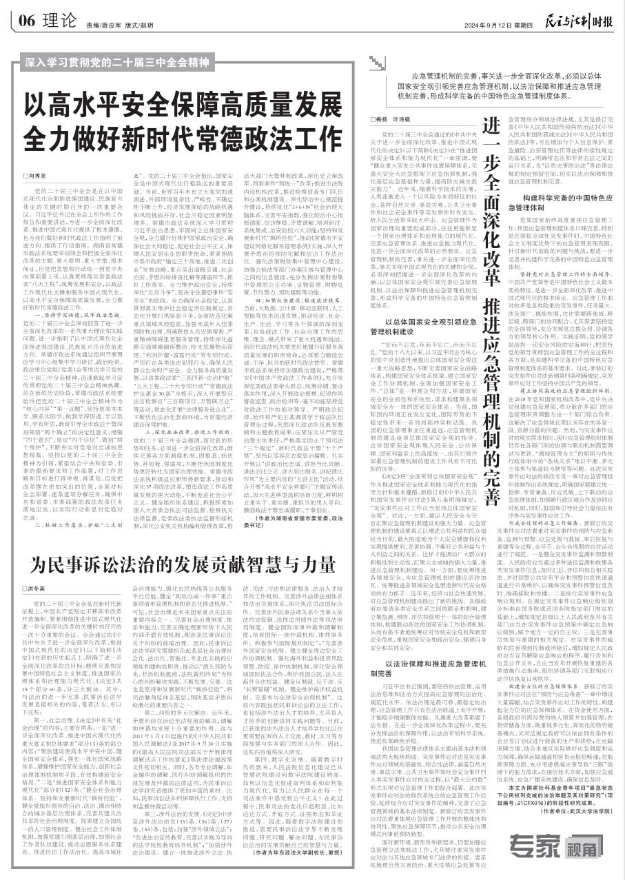 应急管理机制的完善,事关进一步全面深化改革,必须以总体国家安全观引领完善应急管理机制,以法治保障和推进应急管理机制完善,形成科学完备的中国特色应急管理制度体系。