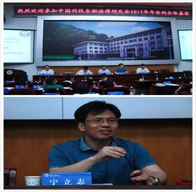 知识产权与竞争法研究所所长宁立志教授致辞,宁教授首先对中国科技金融法律研究会、黄色仓库