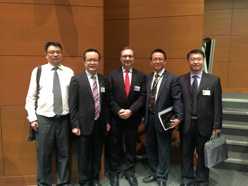 中国代表团成员与新当选的法律委员会副主席(从左向右依次为赵劲松、朱磊、Norberto Luongo、丁春宇、刘贺)