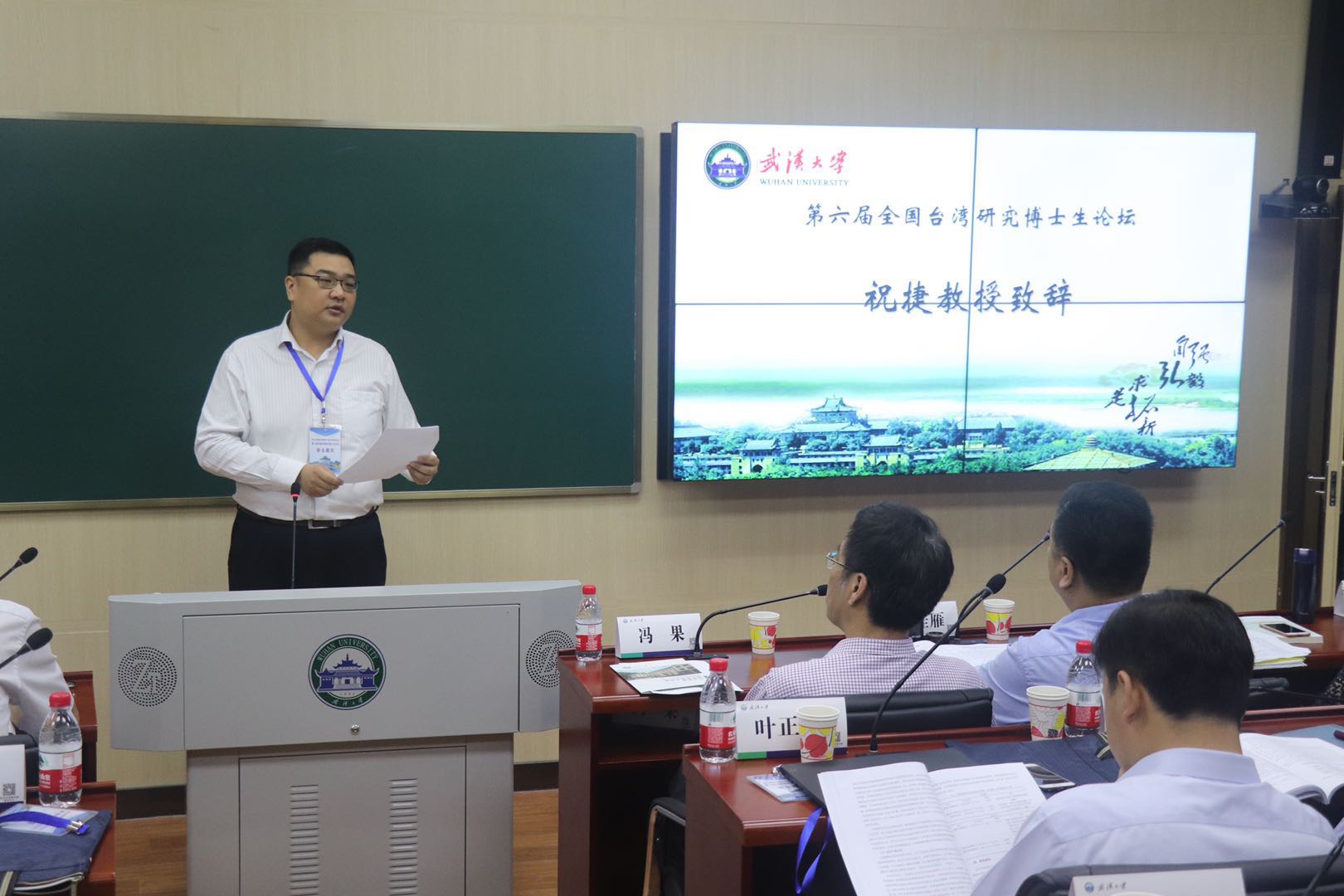 两岸及港澳法制研究中心的发展现状,并指出,青年群体是推动两岸交流的生力军,也是推动时代进步的主力军,期望各位青年学者利用好全国台湾研究博士生论坛这个平台,相互切磋、启迪智慧,为促进国家实现和平统一提供智力支持。祝捷教授强调,两岸关系研究早已超越了纯粹学术理论研究的层面,上升至一种匹夫之责的家国情怀,鼓励各位青年学者能够在学界前辈的关注和提携下,仰望星空,脚踏实地。
