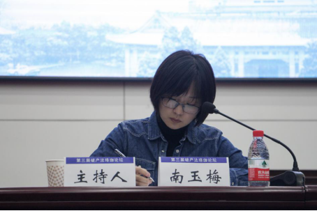 南玉梅副教授主持。武汉市中级人民法院破产审判庭曹文兵法官、上海市协力(苏州)律师事务所薛恒律师、湖北得伟君尚律师事务所高级合伙人刘祥斌律师分别发言。中南财经政法大学冯兴俊副教授、湖北省高级人民法院民二庭张炎法官、湖北省来凤县人民法院舒业树院长参加与谈。