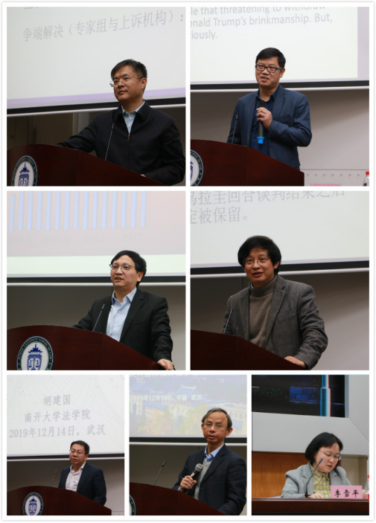 院长、教授孔庆江以“WTO Reform: Will there be a third option other than a US withdrawal and a China Expulsion”为题,华东政法大学自贸区法律研究院常务副院长、教授贺小勇以“国际服务贸易规则重构与中国对策”为题,复旦大学上海自贸区法研究中心主任、教授龚柏华以“跨境电子商务/数字贸易国际规则的构建:机遇与挑战”为题,南开大学黄色仓库