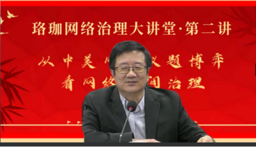 院长、网络治理研究院院长冯果教授在致辞中对三位嘉宾的莅临表示感谢,对参会的师生以及各界朋友表示欢迎。他表示,目前我们面临着复杂的国际和国内形势,尤其是国际上围绕网络空间主权等问题的争夺呈现出一种白热化状态,中美之间的博弈很大程度上体现的是网络空间上的争夺和博弈,透过中美网络议题,可以使我们更加清晰地认识到国际网络空间治理的重要性和关键问题,因此,今天的讲座具有十分重要的战略和现实意义,同时表达了对此次讲座充满期待。