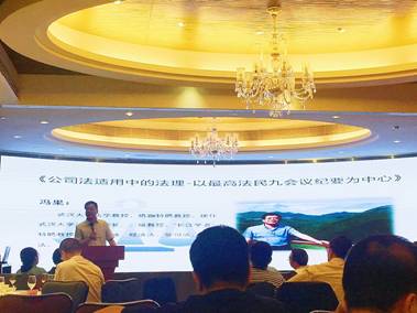 今年的发展情况,回应校友们对母校的关切。然后以新近发布的最高法民九会议纪要(征求意见稿)为中心,结合司法实践为校友们讲解了公司法适用中的法理问题,为校友们提供了高级的精神食粮。