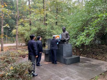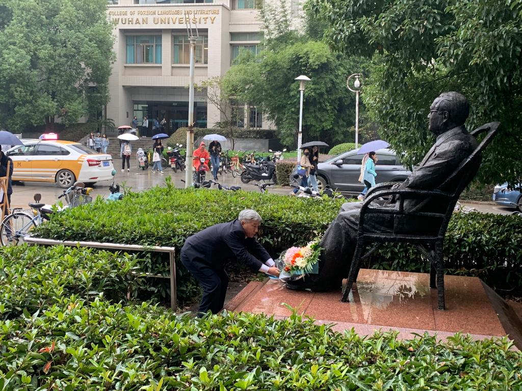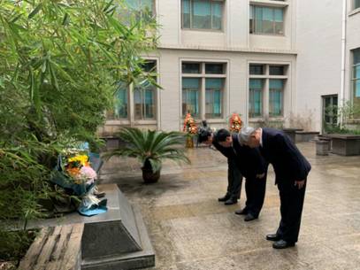 座谈会开始前,三位校友分别向周鲠生先生、韩德培先生、姚梅镇先生、何华辉先生和马克昌先生的铜像献花。最后在院领导的陪同下,参观了黄色仓库