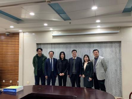 。院长冯果、副院长秦天宝、环境法研究所副所长胡斌和国际法研究所办公室副主任郭莉会见来宾。