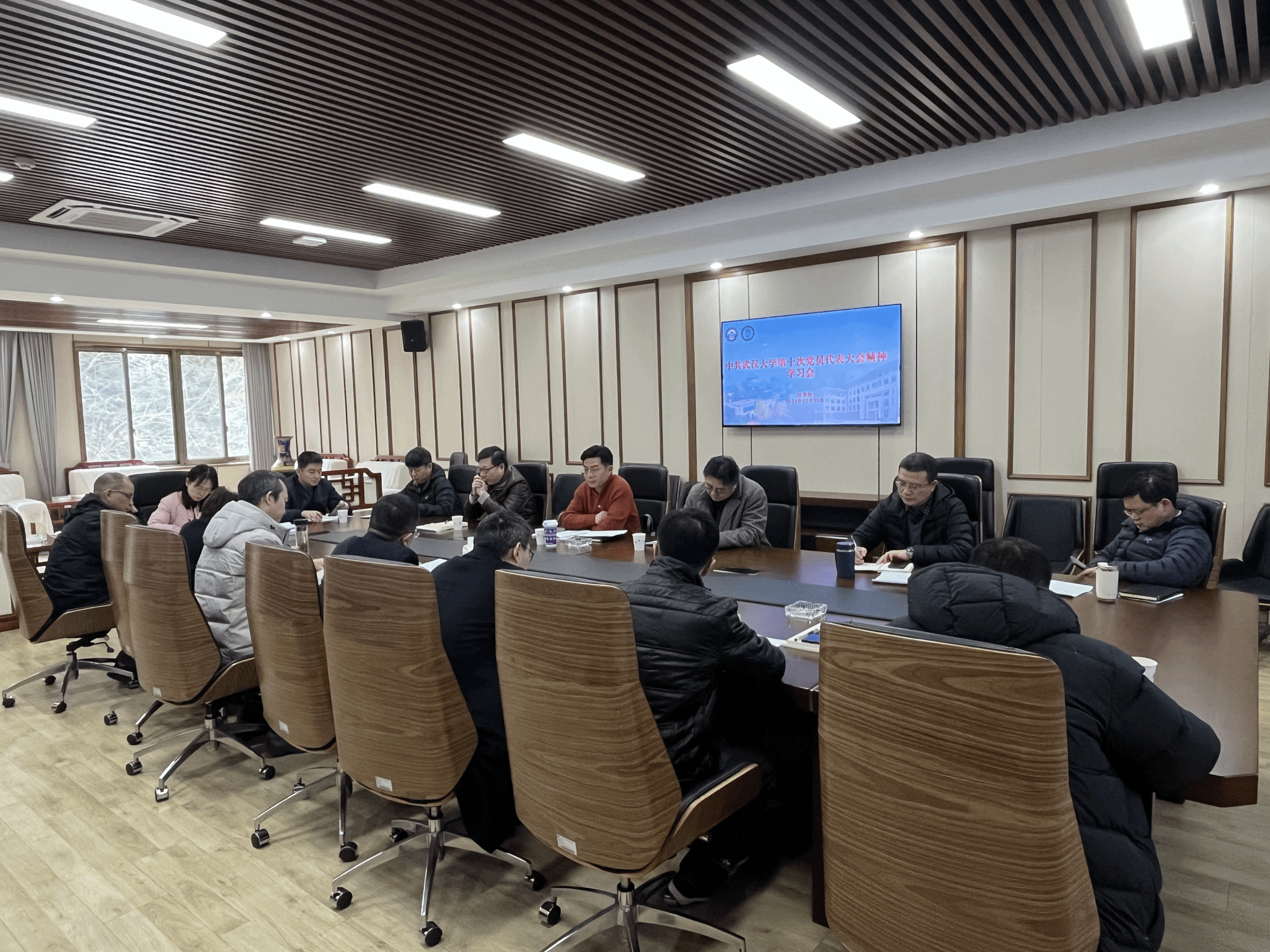 党委理论学习中心组(扩大)召开集中学习会,集体学习学校第十次党代会精神,全体院领导、党代会代表、党政办公室相关同志参加学习,党委书记李霄鹍主持会议。