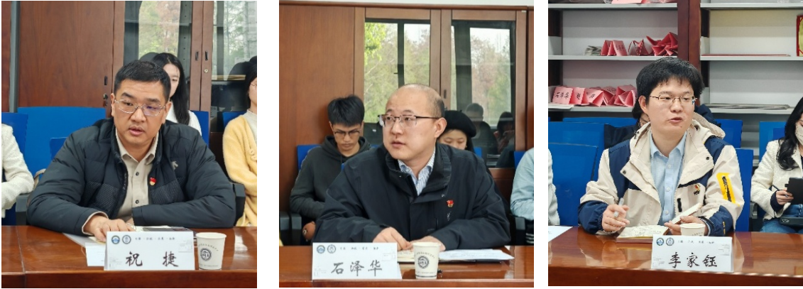 在交流研讨环节,与会同志结合专业研究积极发言。祝捷同志从党内法规体系建设的角度指出,中央八项规定作为新时代管党治党的重要制度创新典范,既彰显了党中央徙木立信的改革决心,又回应了人民群众对作风建设的时代期待,为构建中国特色的党内法规理论体系提供了实践样本。我们要夯实党内法规研究的学理基础,加强对中央八项规定的学理阐释,阐述清楚“中央八项规定何以改变中国”。石泽华同志表示,我们要把中央八项规定作为自身建设的灯塔,将中央八项规定内化于心、外化于行,时刻对照中央八项规定审查自己的行为。青年教师应将中央八项规定作为立德树人的行为准则,在教育教学全过程贯彻廉洁从教要求。李家钰同志梳理了作风建设带来的深刻变革,强调中央八项规定通过规范权力运行、优化政务服务、净化社会风气等举措,有力推动了治理能力现代化和服务型政府建设,实现了党风、政风、社风的风清气正。