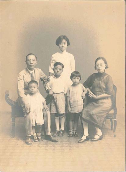 ▲1960年周鲠生夫妇与二女婿周镜院士在北京香山