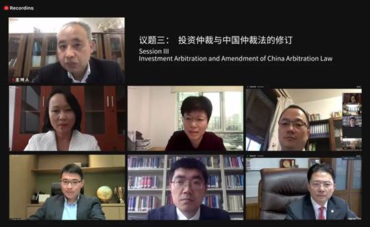 Session III, "Investment Arbitration and Amendment of China Arbitration Law", was chaired by Prof. Xiao Yongping, Director of the Wuhan University Institute of International Law and Advisor to the Permanent Forum. Dr. Wang Xuehua, Chief Partner of Beijing Huanzhong Law Firm and Vice-Chairman of the Permanent Forum; Dr. Wang Wenying, Secretary General of the Hong Kong Centre for Trade Arbitration; Dr. Jiang Lili, Vice President and Secretary General of the Arbitration Institute of China University of Political Science and Law; Dr. Lin Zhong, Partner of Yingming Law Firm and Vice-Chairman of the Permanent Forum; Mr. Qin Dezhi, Head of Regional Legal Affairs Department of Huawei Technologies; Mr. Zhang Sheng, Associate Professor of the Law School of Xi'an Jiaotong University and Executive Secretary of the Permanent Forum, participated in the discussion.