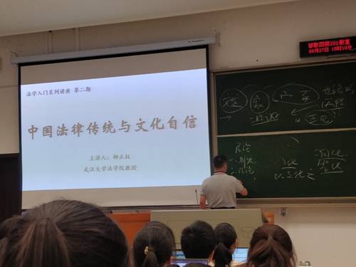 On September 27, 2019, the second session of the introductory lecture series on law was held in Room 201, the fourth teaching building of the Ministry of Arts and Sciences. The theme of the lecture was "China law tradition and cultural confidence". The speaker was Professor Liu Zhengquan, the director of law history teaching and research office. All 2019 undergraduate students attended the lecture.