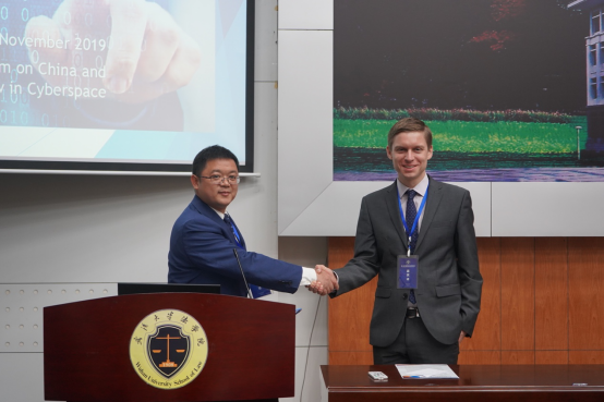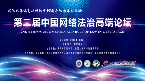 On November 4, 2019, the 2nd Symposium on China and Rule of Law in Cyberspace was successfully held in the Wuhan University school of law. The symposium was hosted by Wuhan University Network Governance Research Institute and Wuhan University School of Law. Beijing Deheng (Wuhan) law firm, Beijing Huaxia Diantong Technology Co., Ltd. and Beijing Lvdiantong Technology Co., Ltd helped to organize the conference. Officers, experts and scholars from the technology information center of the Supreme People's Procuratorate , the department of law and regulation of the Ministry of foreign affairs, the Hubei cyber information office, Wuhan Municipal cyber information office, the people's University of China, the Chinese Academy of Social Sciences, the University of foreign trade and economic cooperation, Central South University, Xinjiang University, East China University of political science and law, Southwest University of political science and law, Tencent security management department, Ali Research Institute, and Jingdong Law Research Institute gathered to discuss the future development of cyberspace governance in the era of artificial intelligence.