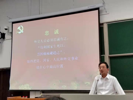 The first part "diplomatic sketch" included "diplomatic affairs", "Diplomat" and "diplomatic soul". First of all, Mr. Huang took "diplomatic affairs" as the starting point and put forward the view that "diplomatic affairs were closely related to our common people". Secondly, Mr. Huang deepened our understanding of diplomacy from the perspective of "diplomats were loyal guardians of national interests". At the end of the first part, Mr. Huang focused on the content of "diplomatic soul". Mr. Huang talked about his experience in foreign affairs negotiations. In that case, he stood firm and never gave in to defend the interests of our motherland.