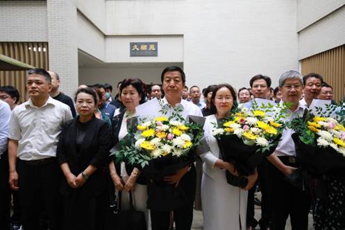 At the beginning of the memorial ceremony, Professor Feng Guo introduced the guests and led the audience to recollect Ma Kechang's extraordinary life history, praised his outstanding contribution to legal education and research in China, inherit and carry forward his academic spirit of "truth-seeking and pragmatism", and make greater contributions to legal research, legal practice and legal education. Ma Xiaohan, Cao Lin, Jia Yu, Professor Xie Wangyuan and Nurse Ye Man, on behalf of their families, disciples and colleagues from all walks of life, laid flowers to Ma Kechang and all staff bowed three times to the bronze statue of Mr. Ma.