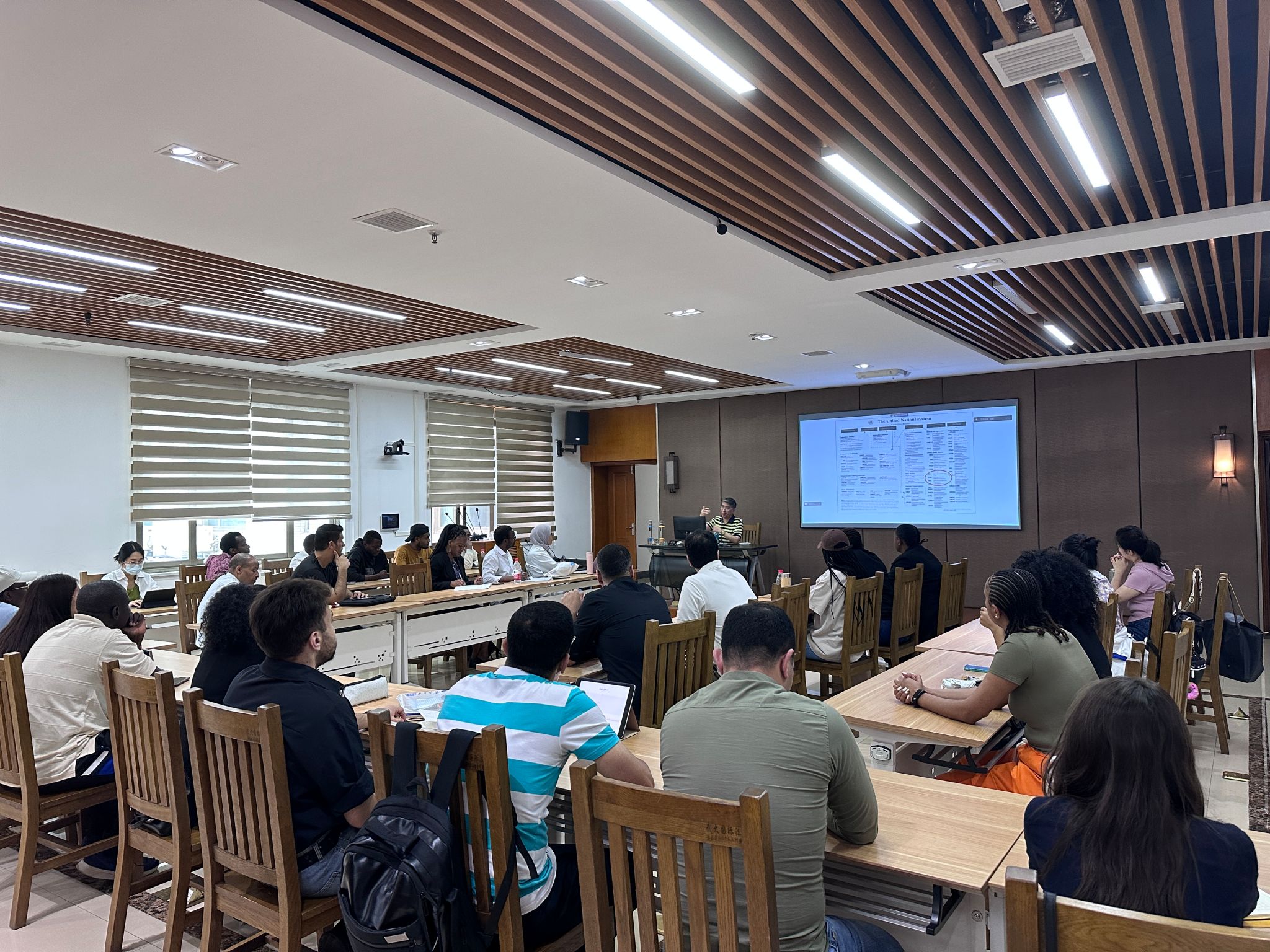 On the afternoon of June 5, 2023, Professor Huang Jiefang from Wuhan University Institute of International Law brought a fascinating international organization work experience sharing to international students, to help those who are interested in working in the United Nations system to better understand the job composition of international organizations and the ways of obtaining job opportunities, so as to better prepare themselves for entering the UN. More than 30 students, both online and offline, participated in this lecture. Professor Li Xueping from Wuhan University Institute of International Law joined the seminar online as she was travelling on business.